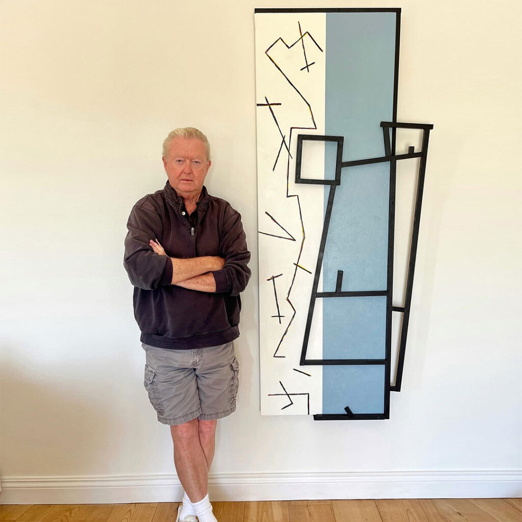 This collection of reductive formalist paintings, constructions, and zips contain a lifetime of exploring the geometry of creativity and culture. Each constructed painting is a world unto itself and feels more like a Bauhaus stage set anticipating its actors’ arrival than a static object hanging on the wall. These are seemingly maquettes for grand gestures and the giant zips have allowed Tom to take the work outside to play with architecture. The buildings become his ground and the zip is the solid line where the dialogue begins between the two forms he is calling forth.